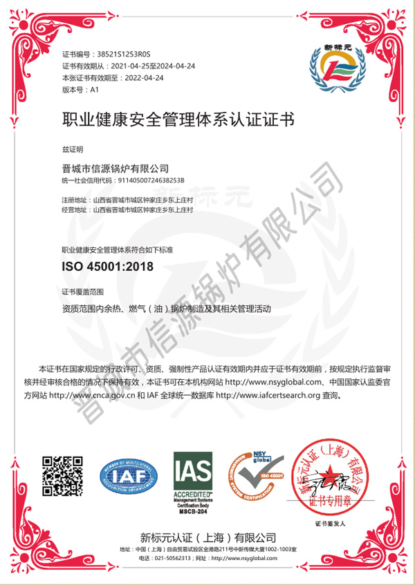 職業(yè)健康安全管理體系認(rèn)證證書